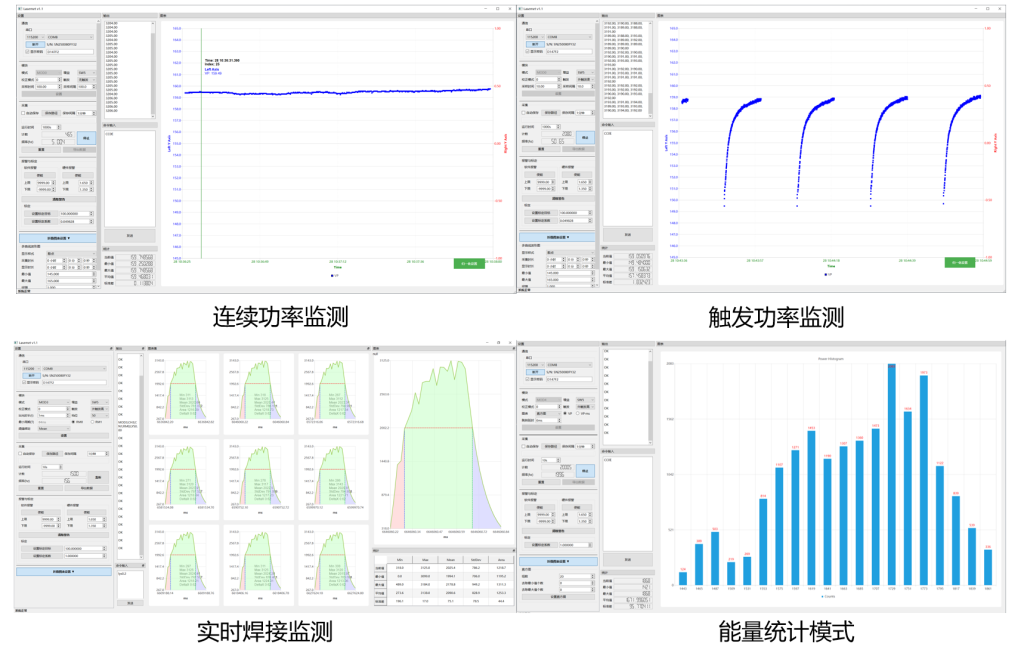 軟件具備實時功率監(jiān)測,能量檢測、數(shù)據(jù)存儲顯示、產(chǎn)品配置等功能,可提供SDK進(jìn)行二次開發(fā),也可以通過RS232進(jìn)行通信。