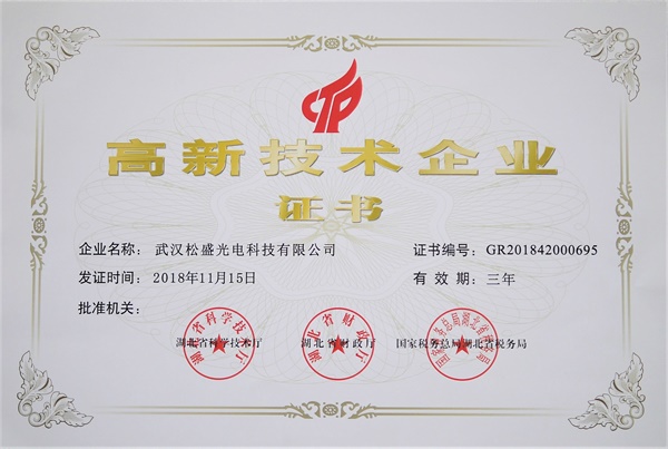 松盛光電榮獲高新技術(shù)企業(yè)證書