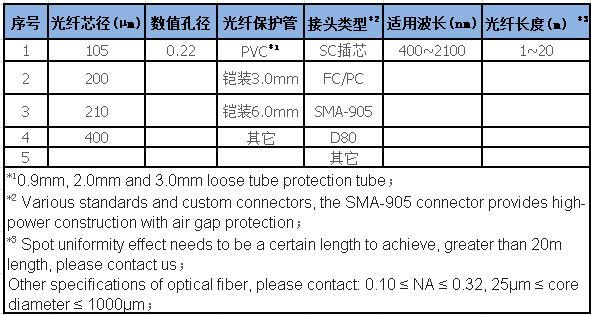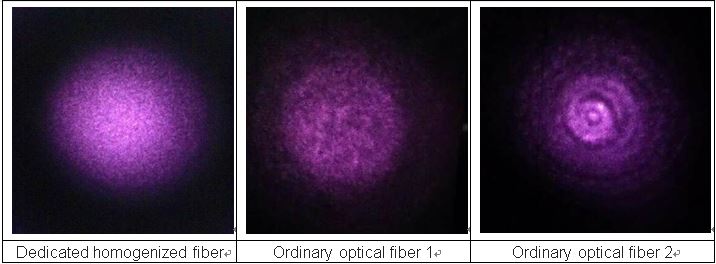 The use of cross-section optimization design and special doping process of the homogenization of energy fiber, with a unique connector manufacturing process, can be asymmetric structure of the high power semiconductor laser spot shaping into uniform circular spot for laser-assisted lighting active infrared imaging system As well as DPSSL-pump laser, laser soldering and other laser spot energy distribution of special occasions.