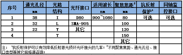 D80 and SMA-905 interface is optional, suitable for fiber-coupled semiconductor laser and YAG laser welding system, the use of composite lens structure, to effectively eliminate the light pump YAG laser monocular lens focus brought about by halo, halo and other poor focus.