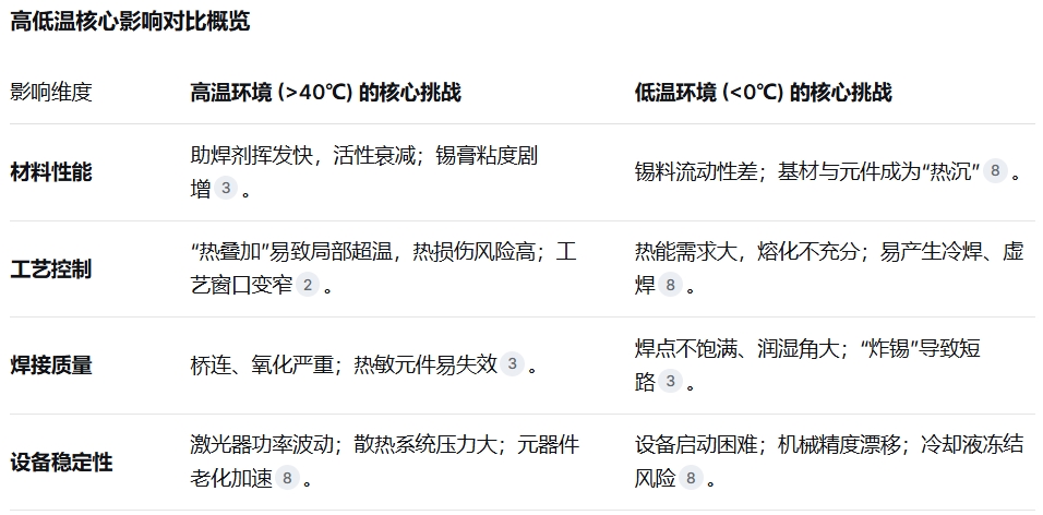 一、高低溫環(huán)境對激光焊錫的多元影響機制