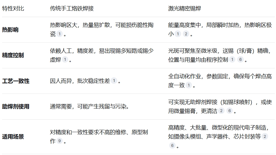 3. 激光錫球噴射焊接:這是目前最前沿的微焊接技術(shù)之一。其采用特制噴嘴,將單個(gè)預(yù)先成型的微米級(jí)錫球送入,隨后用激光瞬間熔化,并在保護(hù)氣體(如氮?dú)?的壓力下精確噴射至焊盤(pán)。整個(gè)過(guò)程非接觸、無(wú)需助焊劑,尤其適合蜂鳴片這類(lèi)對(duì)清潔度和精度要求極高的微型元件焊接。